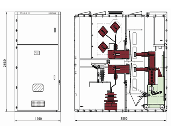 根據國網、省網要求及用戶使用反饋信息,改進的新型鎧裝型產品(1400mm柜寬)。較之原結構產品,在結構工藝、絕緣性能、防護措施方面有了較大改進,在不使用絕緣隔板材料的條件下,空氣絕緣距離能夠滿足電力系統的要求,解決了40.5kV鎧裝式金屬封閉開關設備長期運行后絕緣性能下降的問題。該產品已通過了內部燃弧試驗,內部燃弧等級達到AFLR 31.5kA,0.5S,符合國網技術要求,適用于220kV及以上等級變電所和運行環境較差的變電所。